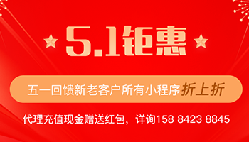 好消息:五一钜惠,好建小程序为回馈新老客户特别推出以下福利:1.所有小程序折上折2.代理充值现金,即送红包详询:158 8423 8845五一放假时间:5.1日--...