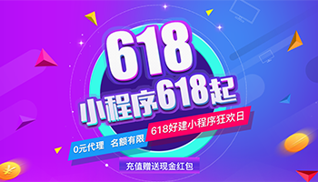 好消息:618年中狂欢,好建小程序为回馈新老客户特别推出以下福利:1.小程序618元起2.0元代理(名额有限)3.代理充值现金,即送现金红包详询:158 8423 ...