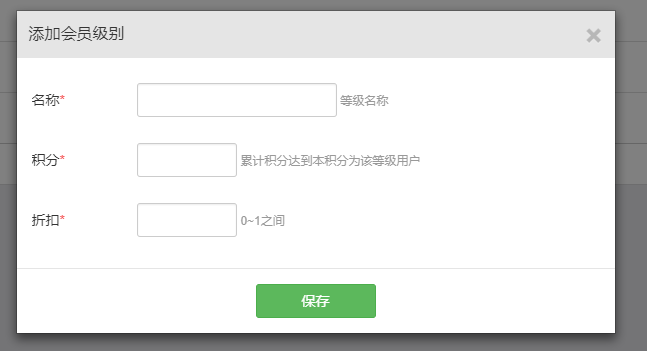添加会员级别时,都要求有对应的积分和折扣。