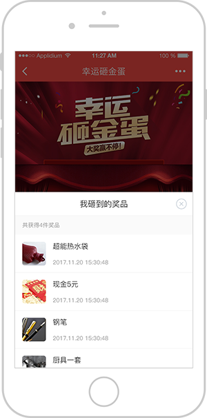 用户可查看自己抽到的奖品和中奖名单,商家在后台也可查看参与抽奖的用户和中奖的用户