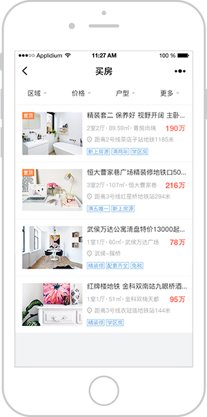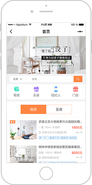 房产中介应用,坐拥微信10亿用户流量,专业化、品质化的服务帮助商家赢得更多用户