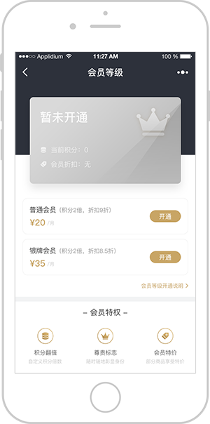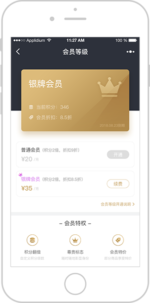 购买会员卡&积分自动升级会员卡,提升用户粘性