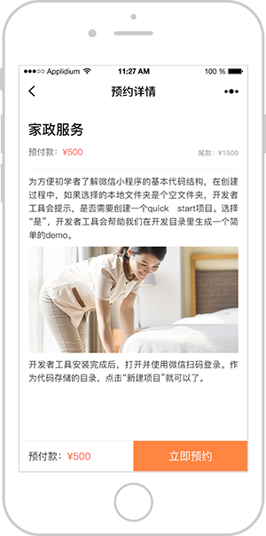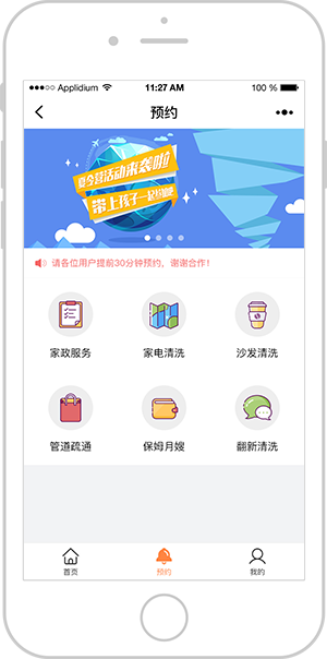 商家一键发布,展示服务;用户在线预约,方便快捷