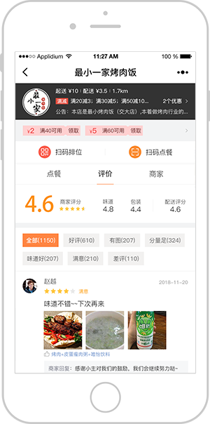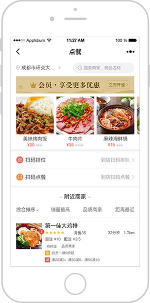 加入多门店,线上引流,类似于美团、大众点评,具有排队、预约、点餐及点评功能,扫码即可点餐