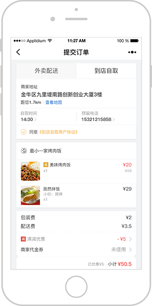 店铺信息展示、外卖平台、预约、在线买单、扫码点餐、小票打印、排队、导航前往,提前下单到店自取等等