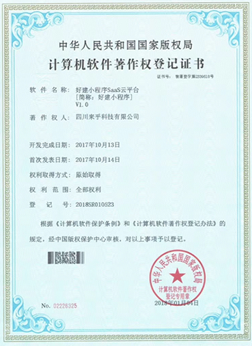 好建小程序荣计算机软件著作权登记证书